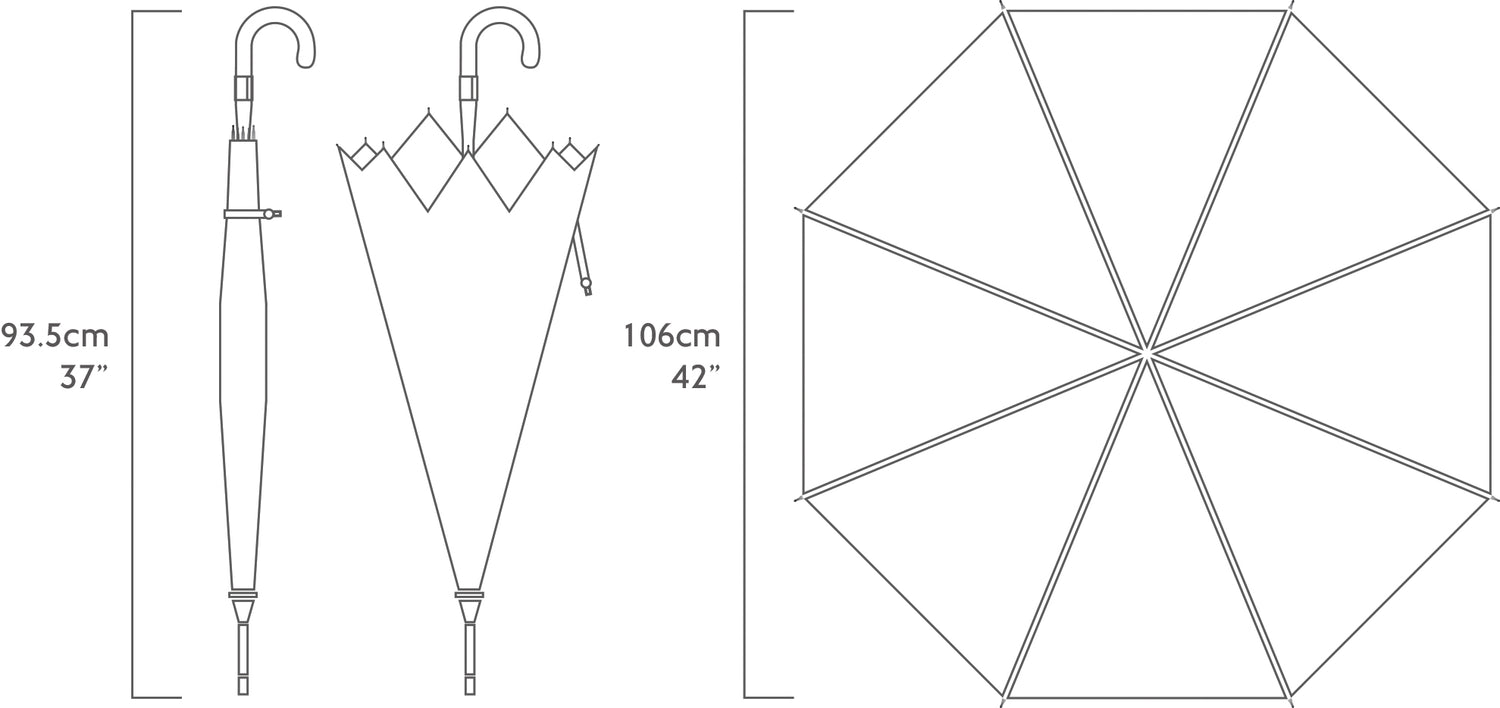 Our sturdiest, most refined umbrella, handcrafted from a single piece of superior quality Oak Wood. Stout and robust. An object of true beauty. Hand-sewn interior detailing and Sterling Silver collar for optional personalisation. Hand Made in London, England.